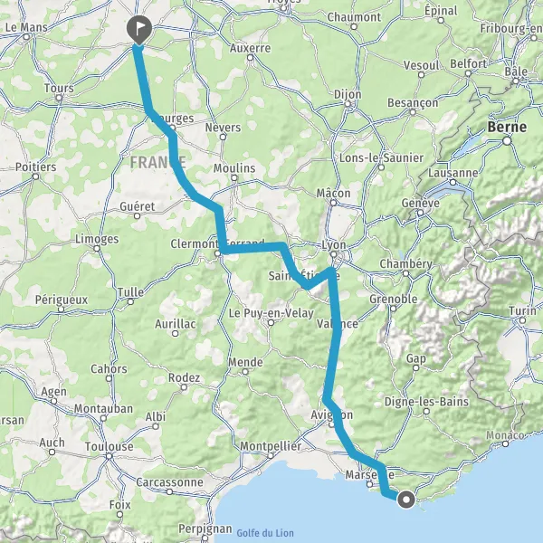 Trajet de Toulon (83000) à Orléans (45000) en voiture