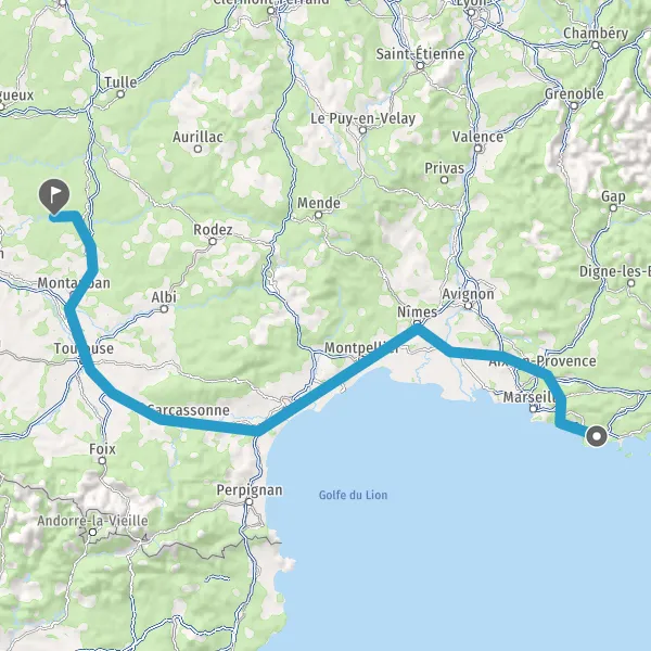 Prendre à droite et rejoindre A61. Continuer sur 136 kilomètres