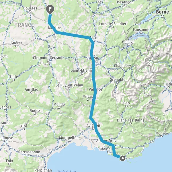 Trajet de Toulon (83000) à Nevers (58000) en voiture