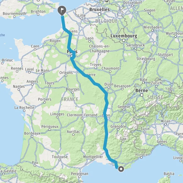 Prendre à droite et rejoindre A16. Continuer sur 224 kilomètres