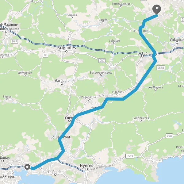 Sortir et rejoindre DN7. Continuer sur 700 mètres