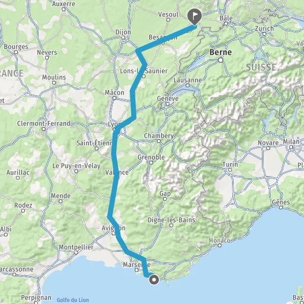 Prendre à droite et rejoindre A36 E60. Continuer sur 125 kilomètres