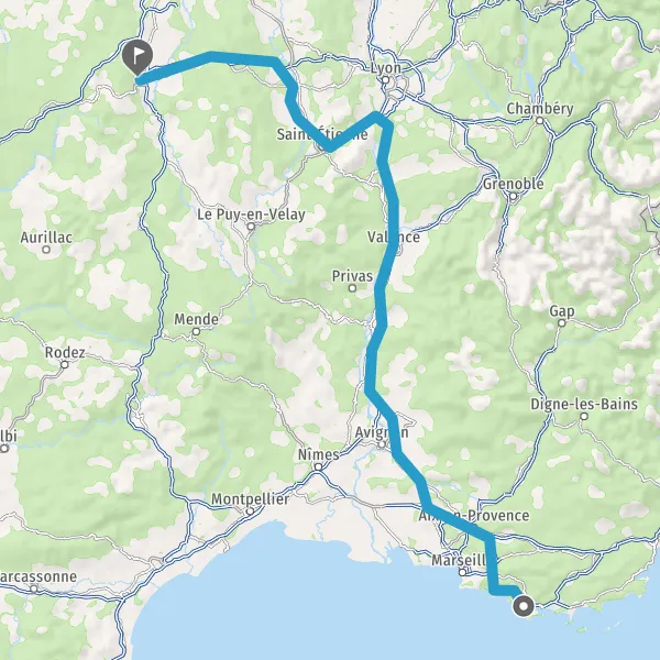 Prendre à droite et rejoindre A72. Continuer sur 53 kilomètres