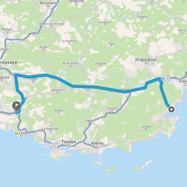 Au rond-point, prendre la 1ère sortie sur D25 (Route du Muy) et continuer sur 14 kilomètres