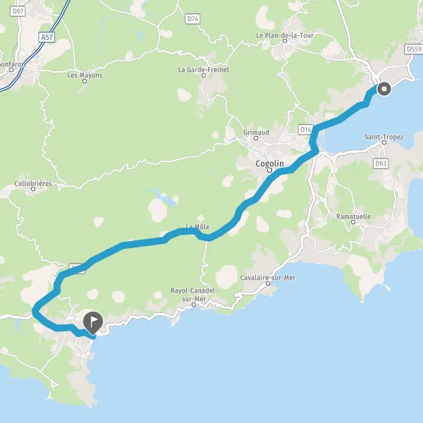 Au rond-point, prendre la 3ème sortie sur D559 (Boulevard de Saint-Raphaël) et continuer sur 2,3 kilomètres
