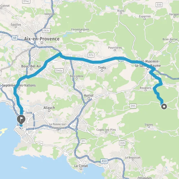 Au rond-point, prendre la 3ème sortie sur D560 (Route de Brignoles) et continuer sur 5,2 kilomètres