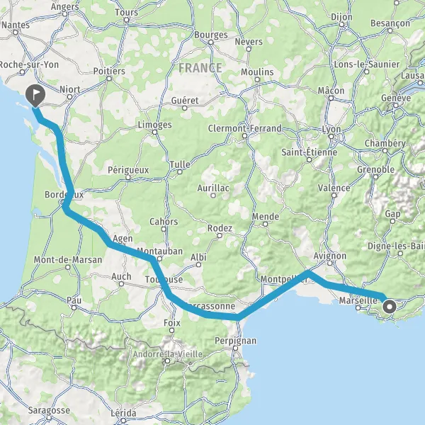 Prendre à droite et rejoindre A61. Continuer sur 136 kilomètres