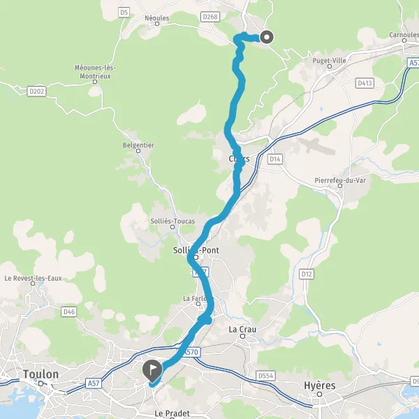 Prendre à droite et rejoindre A57. Continuer sur 8,5 kilomètres
