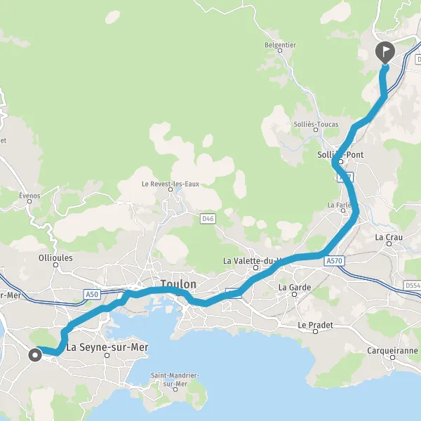 Continuer et rejoindre A50. Continuer sur 22 kilomètres
