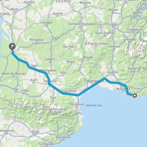Prendre à droite et rejoindre A61. Continuer sur 136 kilomètres