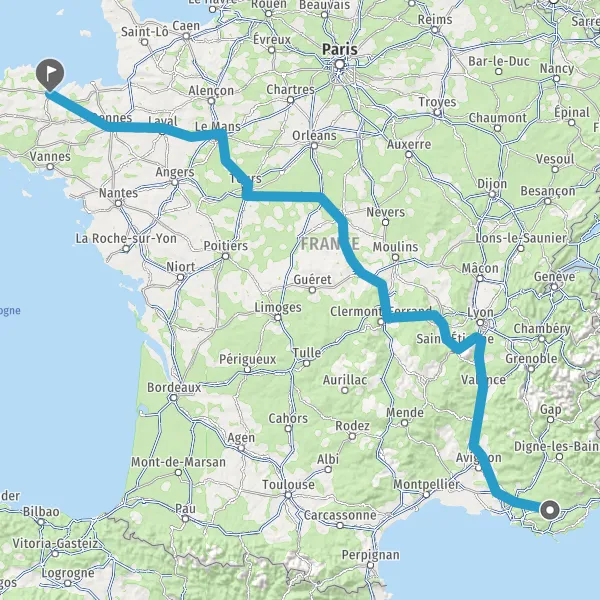 Prendre à droite et rejoindre A85 E604. Continuer sur 105 kilomètres