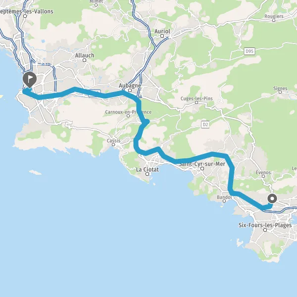 Avec le mode voiture, vous pouvez configurer vos options (type de véhicule, autoroute ou non, péage ou non, distance la plus courte), tout en ayant accès aux infos de circulation grâce à notre service d'info-trafic en temps réel. Ainsi faites des économies sur le coût ou la durée de votre voyage, en trouvant le trajet Ollioules Marseille adapté à vos besoins.