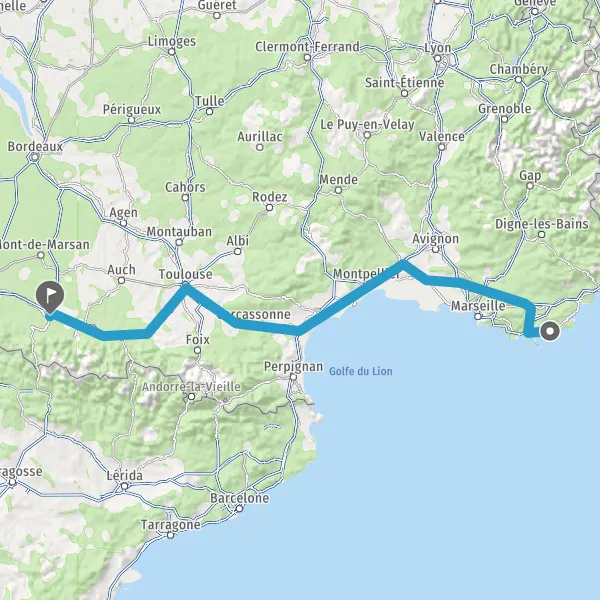Prendre à droite et rejoindre A61. Continuer sur 136 kilomètres