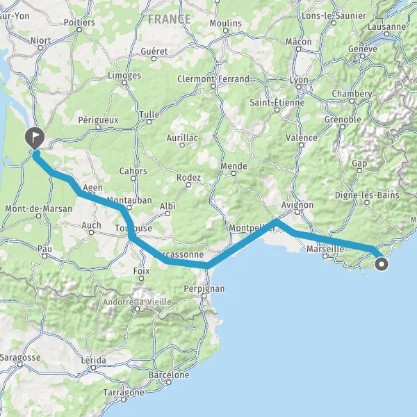Prendre à droite et rejoindre A61. Continuer sur 136 kilomètres