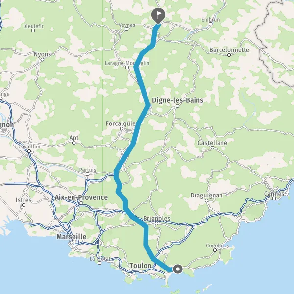 Au rond-point, prendre la 2ème sortie sur N85 (Avenue de Provence) et continuer sur 4,6 kilomètres