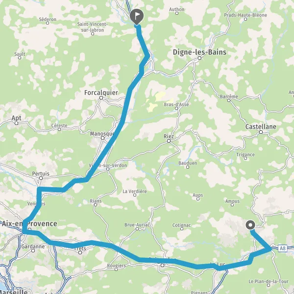 Prendre à droite et rejoindre A8 E80. Continuer sur 99 kilomètres
