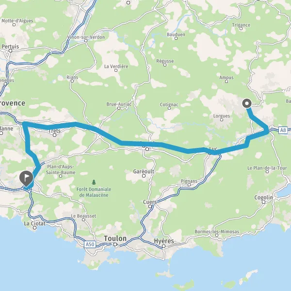 Sortir et rejoindre D2 (Route de Gémenos). Continuer sur 350 mètres