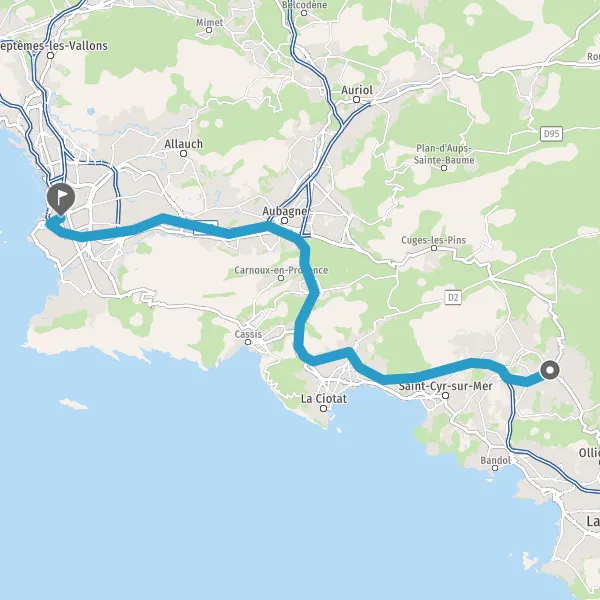 Avec le mode voiture, vous pouvez configurer vos options (type de véhicule, autoroute ou non, péage ou non, distance la plus courte), tout en ayant accès aux infos de circulation grâce à notre service d'info-trafic en temps réel. Ainsi faites des économies sur le coût ou la durée de votre voyage, en trouvant le trajet Le Beausset Marseille adapté à vos besoins.