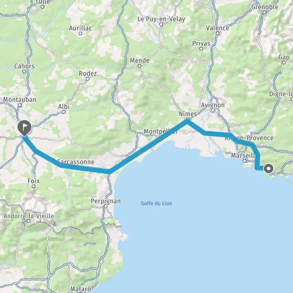 Prendre à droite et rejoindre A61. Continuer sur 136 kilomètres