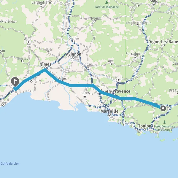 Au rond-point, prendre la 2ème sortie sur DN7 (Route de Brignoles) et continuer sur 5,7 kilomètres