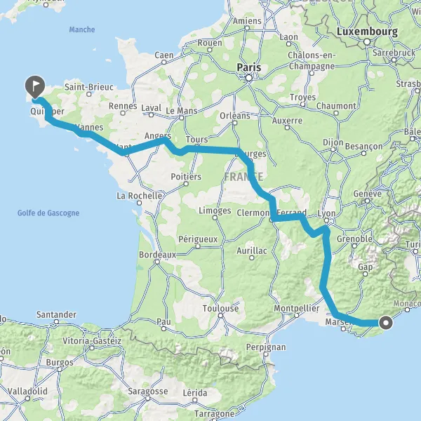 Prendre à droite et rejoindre A85 E604. Continuer sur 205 kilomètres