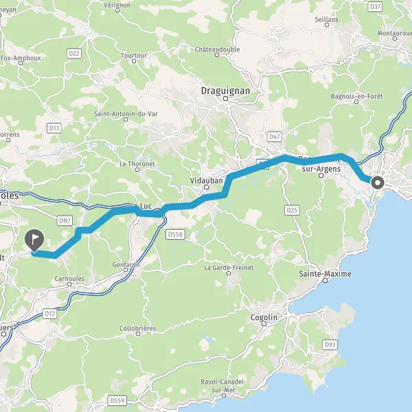 Sortir et rejoindre DN7. Continuer sur 500 mètres