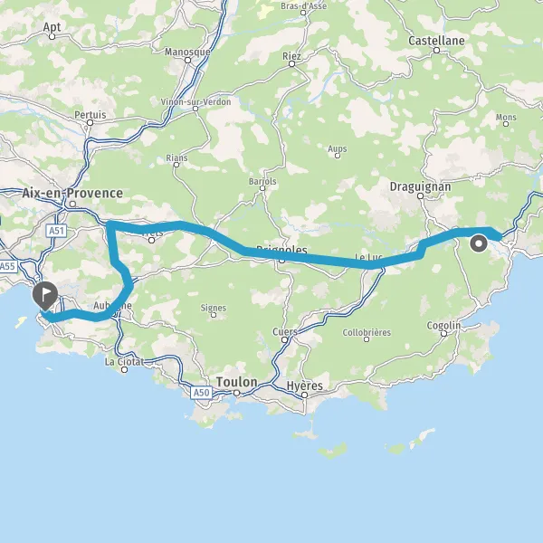 Avec le mode voiture, vous pouvez configurer vos options (type de véhicule, autoroute ou non, péage ou non, distance la plus courte), tout en ayant accès aux infos de circulation grâce à notre service d'info-trafic en temps réel. Ainsi faites des économies sur le coût ou la durée de votre voyage, en trouvant le trajet Roquebrune-sur-Argens Marseille adapté à vos besoins.