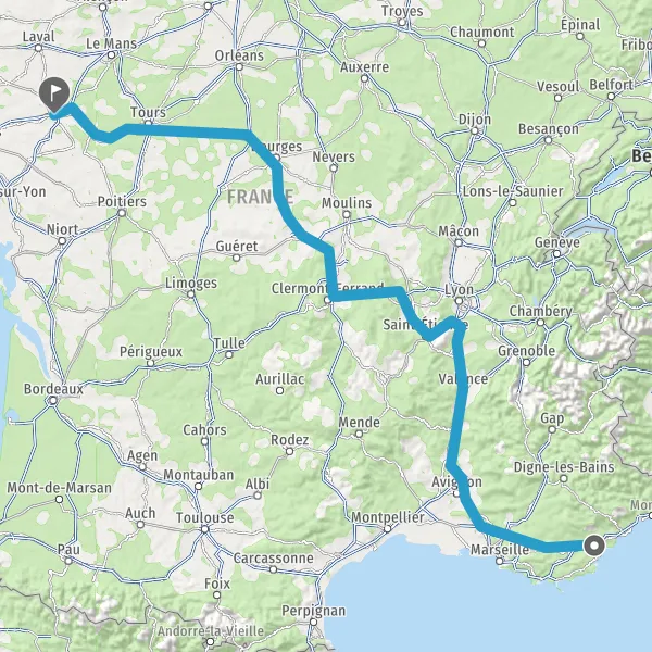 Prendre à droite et rejoindre A85 E604. Continuer sur 205 kilomètres
