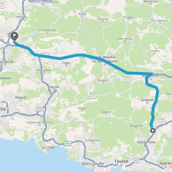 Avec le mode voiture, vous pouvez configurer vos options (type de véhicule, autoroute ou non, péage ou non, distance la plus courte), tout en ayant accès aux infos de circulation grâce à notre service d'info-trafic en temps réel. Ainsi faites des économies sur le coût ou la durée de votre voyage, en trouvant le trajet Cuers Aix-en-Provence adapté à vos besoins.