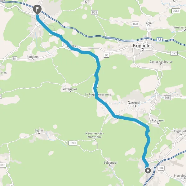 Au rond-point, prendre la 2ème sortie sur D5 (Route de Brignoles) et continuer sur 600 mètres