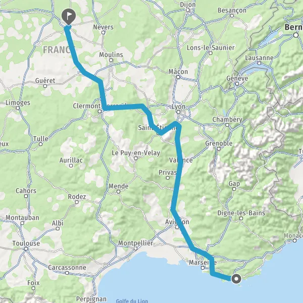Prendre à droite et rejoindre A72. Continuer sur 53 kilomètres