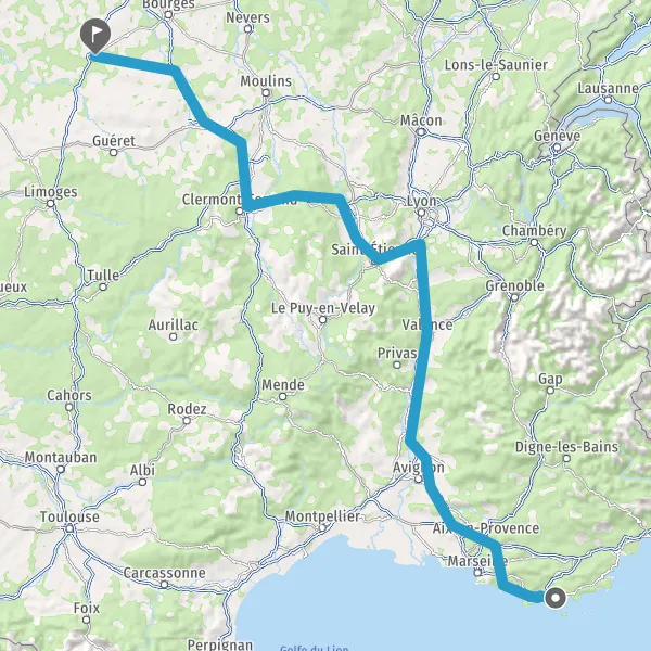 Prendre à droite et rejoindre A72. Continuer sur 53 kilomètres