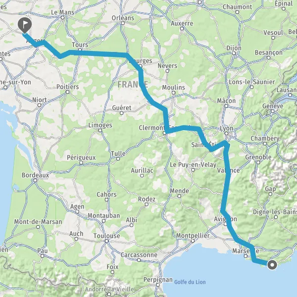 Prendre à droite et rejoindre A85 E604. Continuer sur 205 kilomètres
