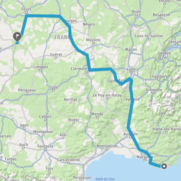 Prendre à droite et rejoindre A72. Continuer sur 53 kilomètres
