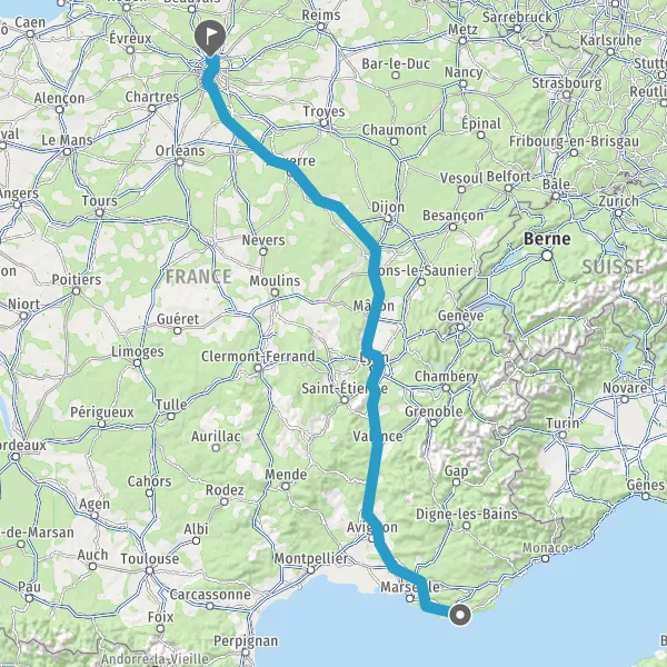 Prendre à droite et rejoindre A6. Continuer sur 294 kilomètres