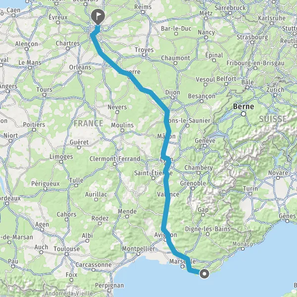 Prendre à droite et rejoindre A6. Continuer sur 294 kilomètres