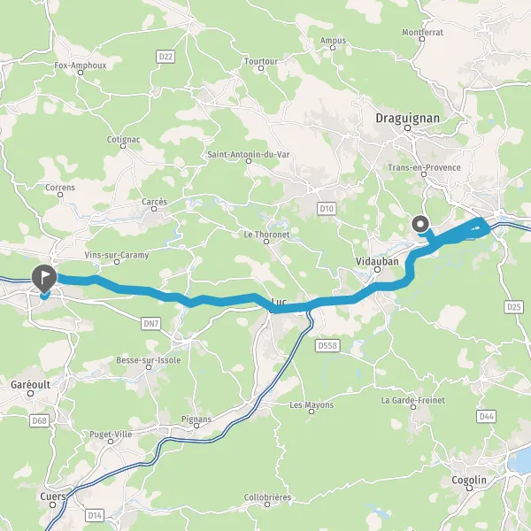 Au rond-point, prendre la 2ème sortie sur DN7 (Route de Brignoles) et continuer sur 5,7 kilomètres