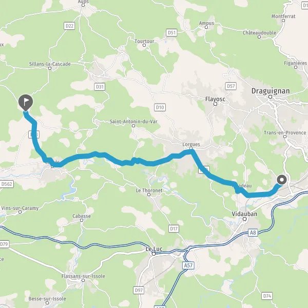 Tourner légèrement à gauche sur D562 (Route de Carces) et continuer sur 8,7 kilomètres