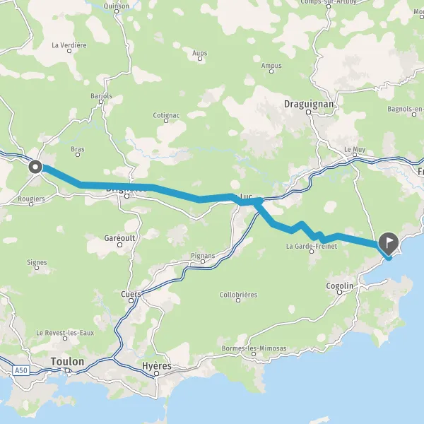 Tourner à droite sur D125 (Route de Sainte-Maxime) et continuer sur 17 kilomètres