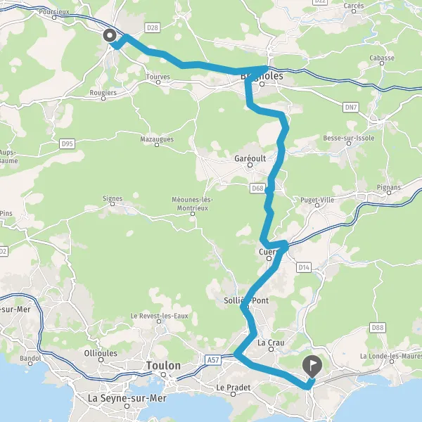 Prendre à droite et rejoindre A57. Continuer sur 14 kilomètres