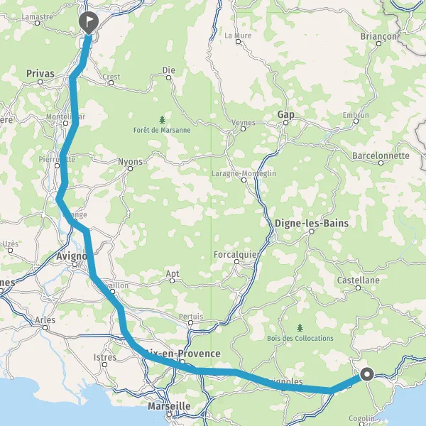 Continuer E80 (La Provençale) sur 190 kilomètres