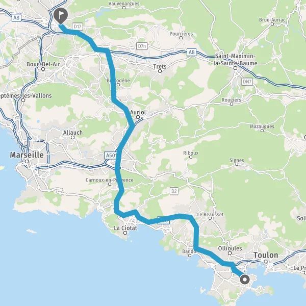 A50La CiotatAubagneMarseilleAix-en-Provence