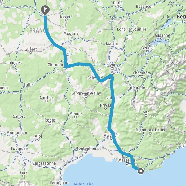 Prendre à droite et rejoindre A72. Continuer sur 53 kilomètres