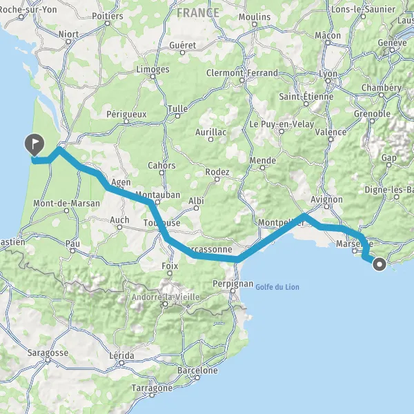 Prendre à droite et rejoindre A61. Continuer sur 136 kilomètres