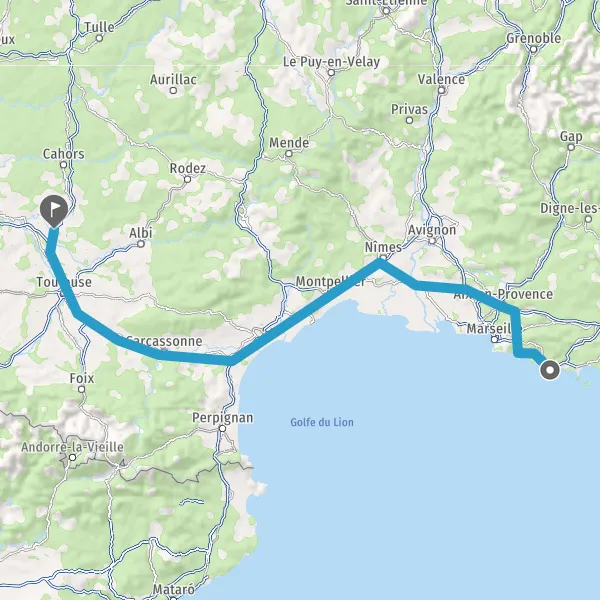 Prendre à droite et rejoindre A61. Continuer sur 136 kilomètres