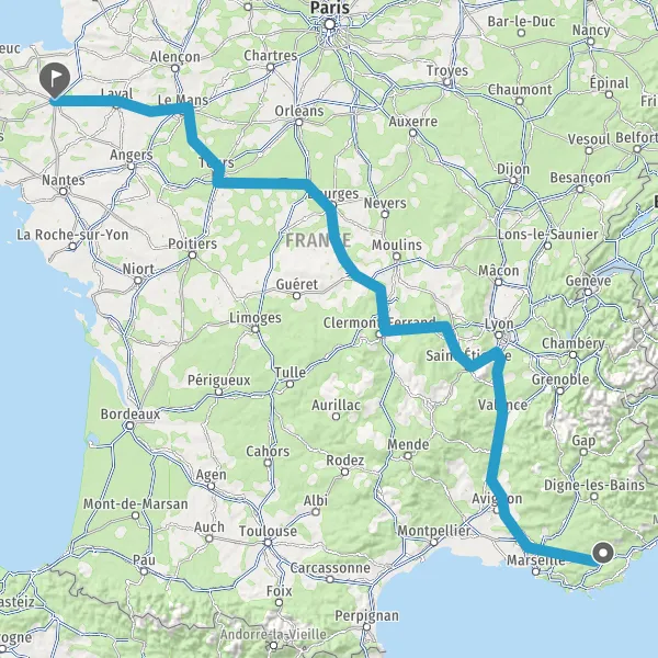Prendre à droite et rejoindre A85 E604. Continuer sur 105 kilomètres