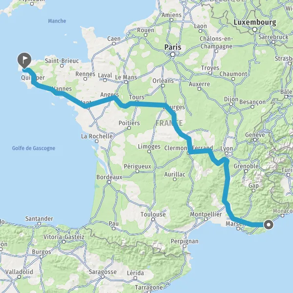 Prendre à droite et rejoindre A85 E604. Continuer sur 205 kilomètres