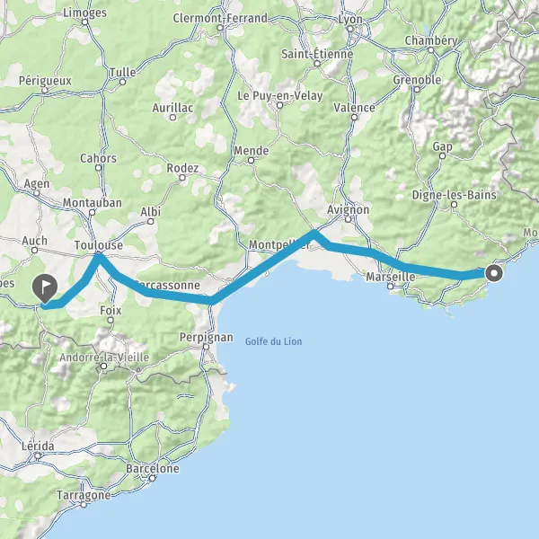 Prendre à droite et rejoindre A61. Continuer sur 136 kilomètres
