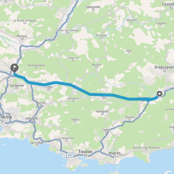 Avec le mode voiture, vous pouvez configurer vos options (type de véhicule, autoroute ou non, péage ou non, distance la plus courte), tout en ayant accès aux infos de circulation grâce à notre service d'info-trafic en temps réel. Ainsi faites des économies sur le coût ou la durée de votre voyage, en trouvant le trajet Vidauban Aix-en-Provence adapté à vos besoins.