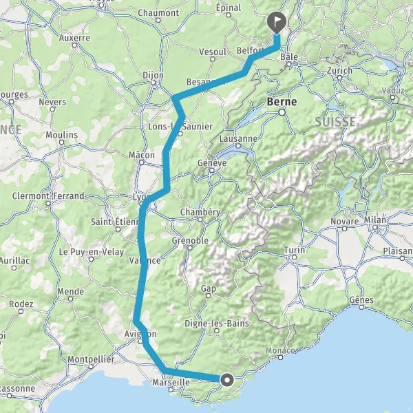 Prendre à droite et rejoindre A36 E60. Continuer sur 125 kilomètres